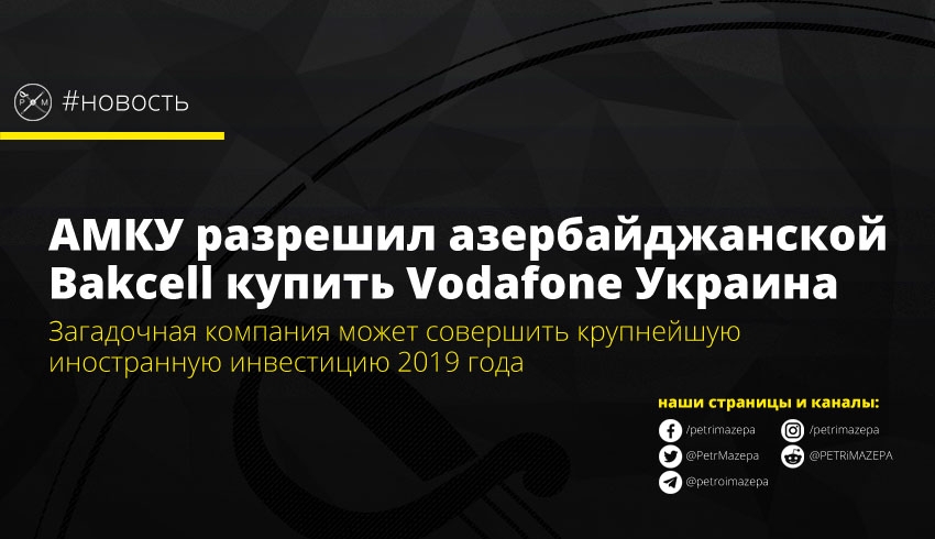 Антимонопольный комитет Украины разрешил компании BAKCELL из Баку приобрести акции компании Preludium B.V., что обеспечит азербайджанцам получить контроль над украинским мобильным оператором Vodafone. Об этом сообщается в АМКУ.