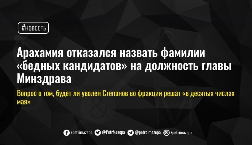 Если в начале этой недели некоторые «Слуги народа» говорили, что министра здравоохранения Максима Степанова увольнять точно не будут, потому что, как минимум, «не понимания на кого менять», то теперь у главы фракции Давида Арахамии таких кандидатур появилось сразу несколько. Но он как «почтальон Печкин» нам их не покажет.