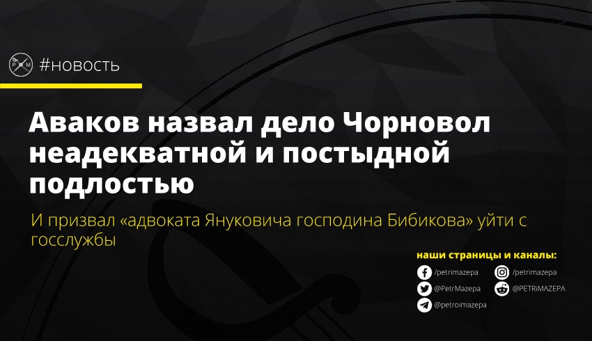 Глава МВД Арсен Аваков заявил, что дело против экс-нардепа Татьяны Чорновол «неадекватно и постыдно», обвинил в происходящем «адвоката Януковича господина Бибикова», и призвал его «пойти к Януковичу обратно».