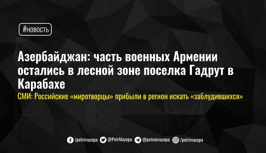 Служба государственной безопасности Азербайджана сообщает, что после объявления режима «тишины» 10 ноября, часть вооруженных сил Армении остались в лесной зоне поселка Гадрут Ходжавендского района, перешедшего под контроль Баку. В Армении СМИ заявили, что военные потерялись в лесу. Российские миротворцы прибыли в район, где исчезли военные, и по громкоговорителю обратились к ним.