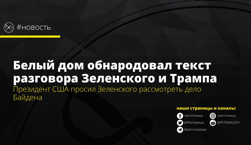 Белый дом обнародовал текст разговора Зеленского и Трампа