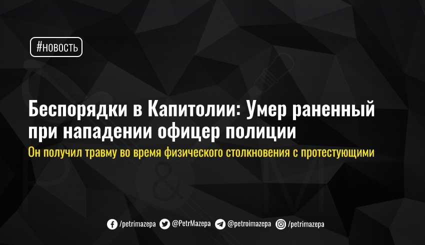 Беспорядки в Капитолии: Умер раненный при нападении офицер полиции