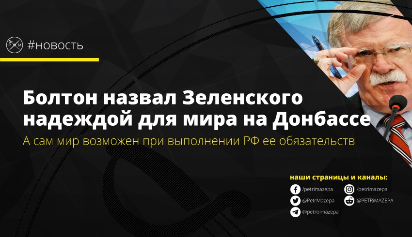 Советник президента США по вопросам безопасности Джон Болтон считает, что избрание главой Украины Владимира Зеленского создает условия для мирного урегулирования ситуации на Донбассе и улучшения отношений между Россией и США. Но при этом советник Трампа отметил, что для реализации этого, нужны действия со стороны РФ.