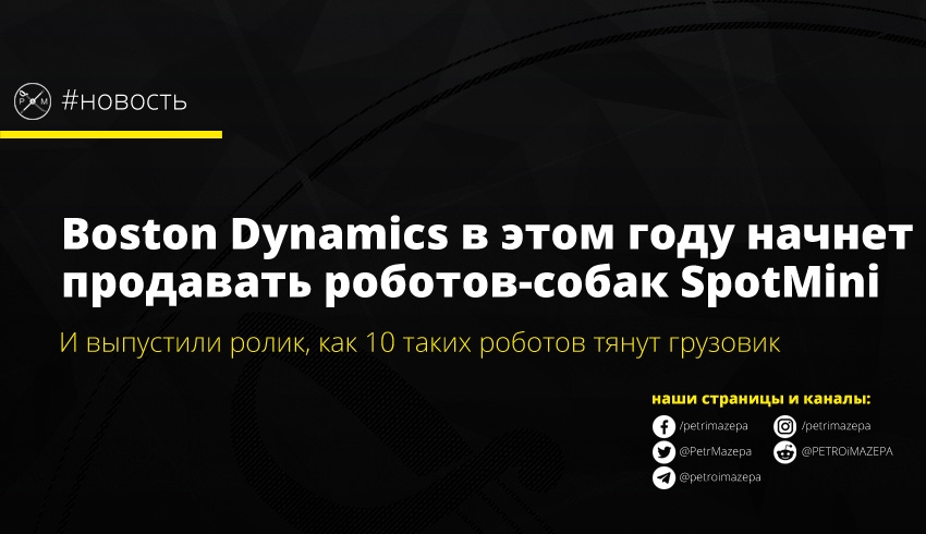 Американская компания Boston Dynamics выпустила видеоролик, на котором десять роботов-собак SpotMini тянут грузовик. Первую партию таких роботов планируют продать уже этим летом.