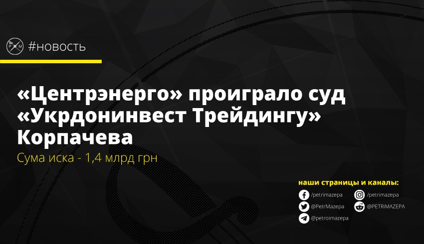 «Центрэнерго» проиграло суд «Укрдонинвест Трейдингу» Корпачева