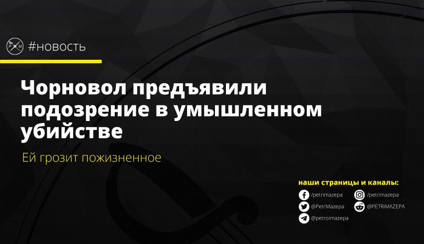 Народному депутату ВР VIII созыва Татьяне Чорновол предъявили подозрение в умышленном убийстве, совершенном группой лиц по предварительному сговору. Санкция статьи предусматривает лишение свободы на срок от 10 лет до пожизненного.