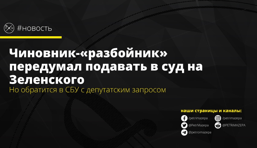 Чиновник-«разбойник» передумал подавать в суд на Зеленского