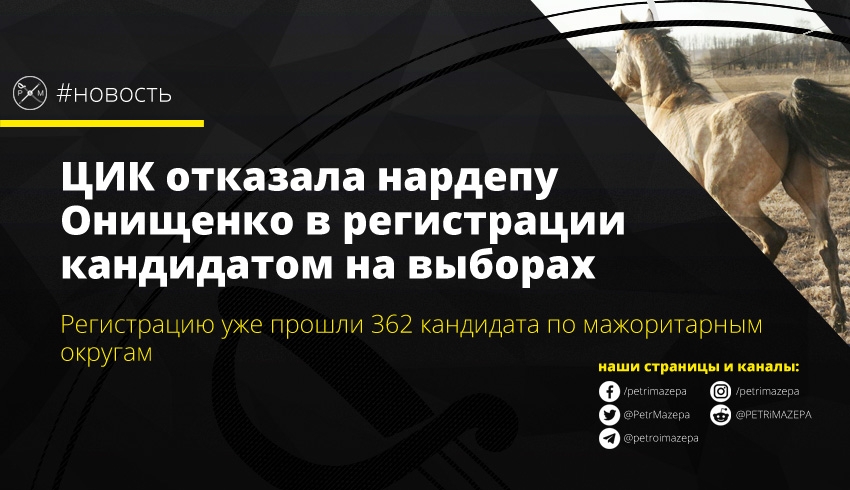 На сегодняшнем заседании Центральная избирательная комиссия (ЦИК) отказала внефракционному народному депутату Александру Онищенко в регистрации для участия во внеочередных выборах в Верховную Раду по мажоритарному округу. Также было отказано в регистрации еще 4 кандиадатам, а общее количество зарегистрированных – 362 человека