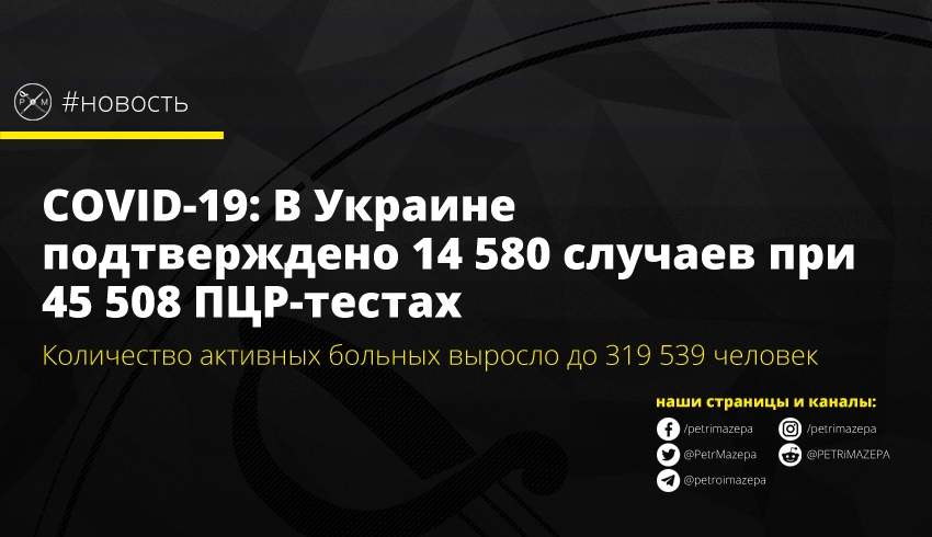 COVID-19: В Украине подтверждено 14 580 случаев при 45 508 ПЦР-тестах