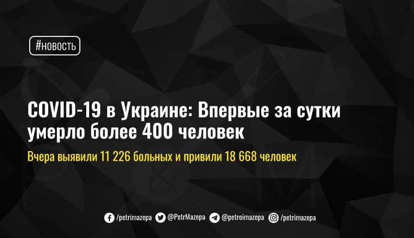 COVID-19 в Украине: Впервые за сутки умерло более 400 человек