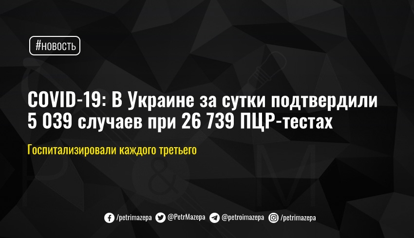 COVID-19: В Украине за сутки подтвердили 5 039 случаев при 26 739 ПЦР-тестах