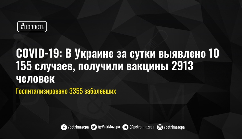 COVID-19: В Украине за сутки выявлено 10 155 случаев, получили вакцины 2913 человек