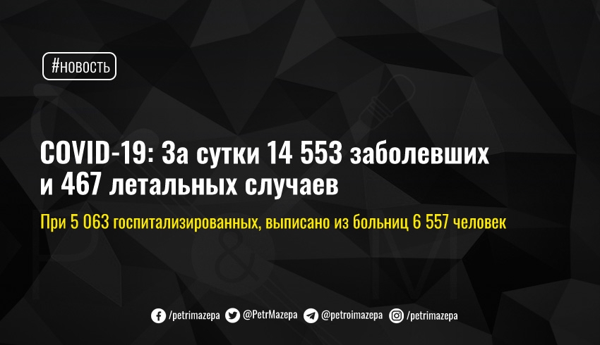 COVID-19: За сутки 14 553 заболевших и 467 летальных случаев