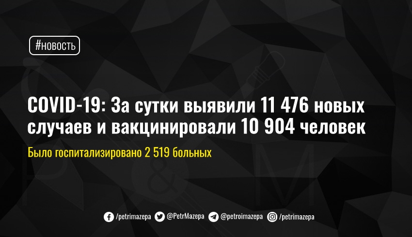 COVID-19: За сутки выявили 11 476 новых случаев и вакцинировали 10 904 человек