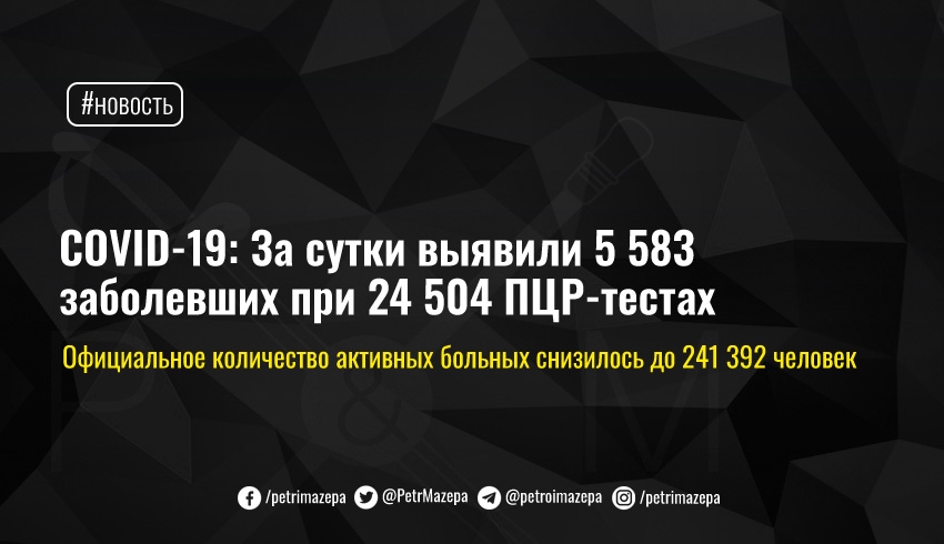 COVID-19: За сутки выявили 5 583 заболевших при 24 504 ПЦР-тестах