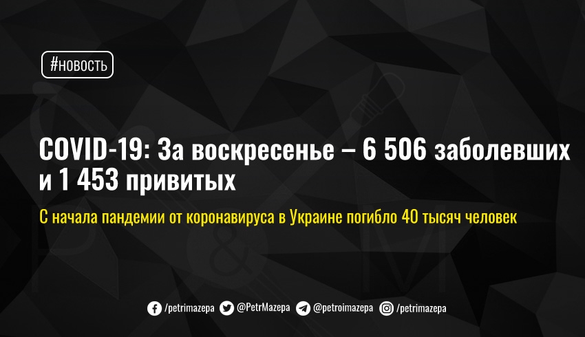 COVID-19: За воскресенье – 6 506 заболевших и 1 453 привитых