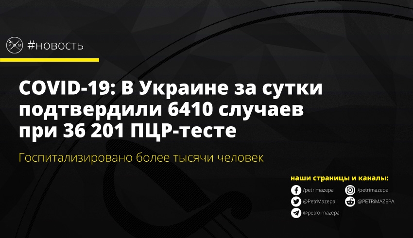 COVID-19: В Украине за сутки подтвердили 6410 случаев при 36 201 ПЦР-тесте