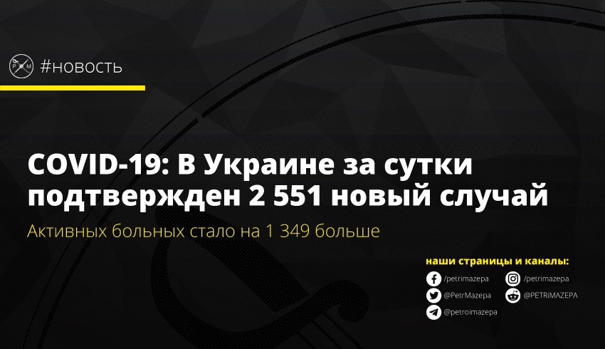 COVID-19: В Украине за сутки подтвержден 2 551 новый случай