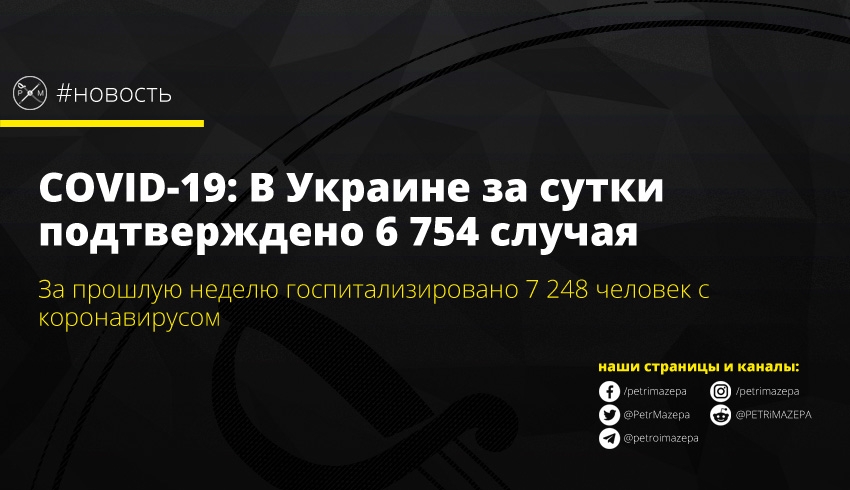 COVID-19: В Украине за сутки подтверждено 6 754 случая