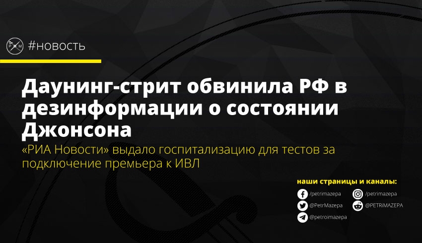 Даунинг-стрит официально обвинила российское государственное издание «РИА Новости» в дезинформации касательно состояния премьер-министра Бориса Джонсона, который был госпитализирован после заражения COVID-19.