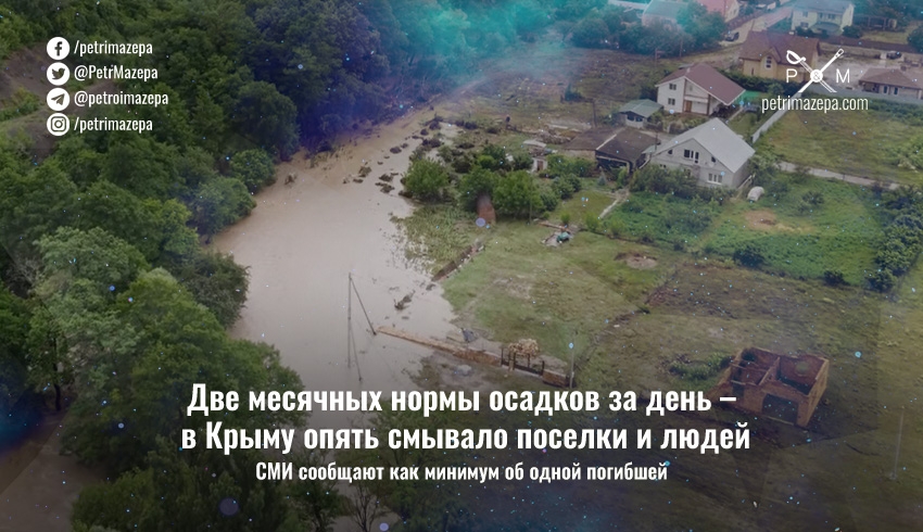 В Крыму очередной потоп. Ливни идут почти по всей территории оккупированного полуострова. Сильнее всего пострадал Бахчисарайский район, где за сутки по данным росСМИ выпали две месячные нормы осадков. В результате несколько рек вышли из берегов, уровень воды поднялся более чем на два метра.