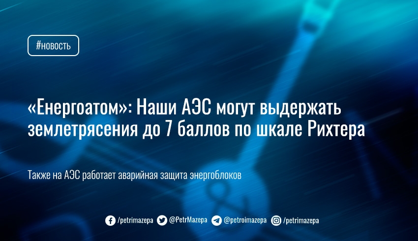 «Энергоатом» заверяет, что все украинские АЭС проектировались и строились с учетом сейсмической активности региона и способны выдержать землетрясения до 7 баллов по шкале Рихтера. Оборудованием, фиксирующим толчки земной коры, оснащены все АЭС.