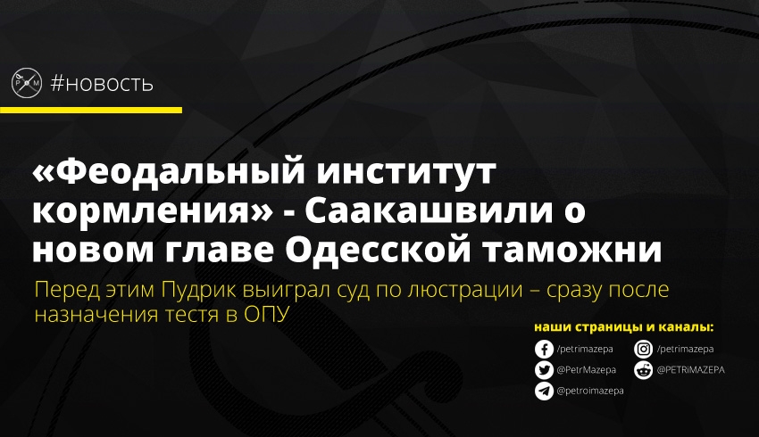 Пудрик стал главой Одесской таможни с 25 августа 2020 года, о чем сообщается на странице местной таможни. Вчера Михеил Саакашвили назвал это назначение «типичным старым феодальным институтом кормления, ничего общего не имеющий с государственными интересами». Он выступил против такого «пожирания собственного национального организма» и предложил альтернативу.