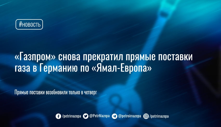 «Газпром» снова прекратил прямые поставки газа в Германию по «Ямал-Европа»