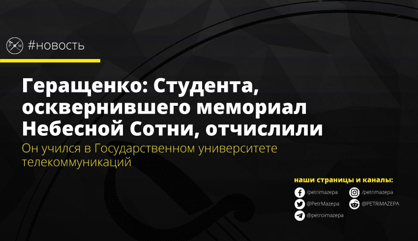 Геращенко: Студента, осквернившего мемориал Небесной Сотни, отчислили