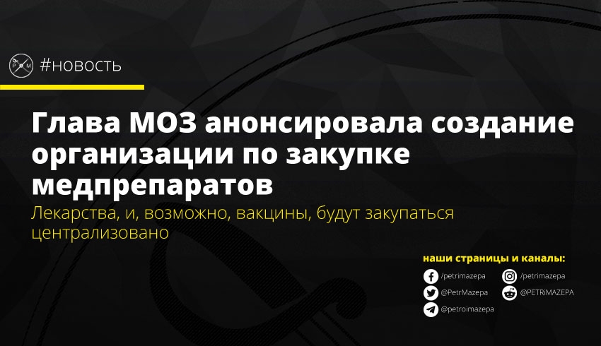 Министр здравоохранения Зоряна Скалецкая сообщила, что в Украине появится отдельная организация, которая будет отвечать за централизованную закупку лекарств. В будущем возможно эта же организация будет заниматься закупкой вакцин.