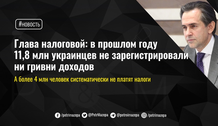 Глава налоговой: в прошлом году 11,8 млн украинцев не зарегистрировали ни гривни доходов