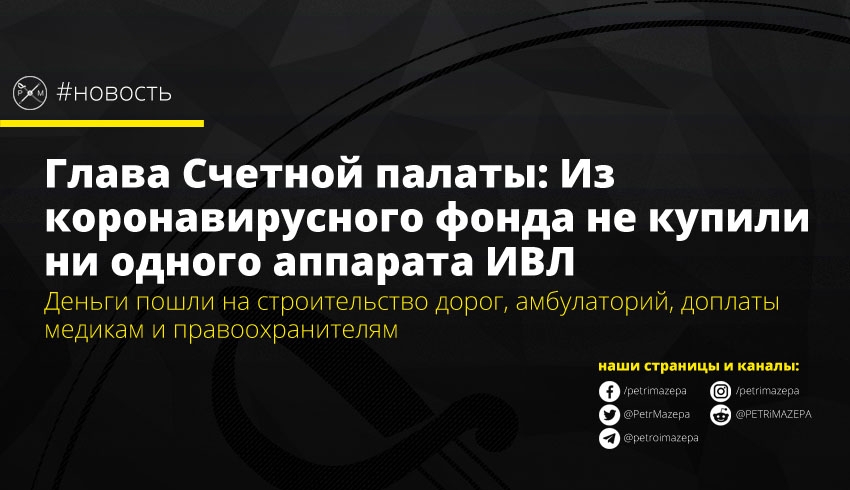 На данный момент из фонда борьбы с COVID-19 не было закуплено ни одного аппарата искусственной вентиляции легких – сообщил глава Счетной палаты Валерий Пацкан. ИВЛ закупали меценаты и госорганы, правда последние для себя, а деньги из «коронавирусного» фонда были потрачены на строительство, соцвыплаты и доплаты.