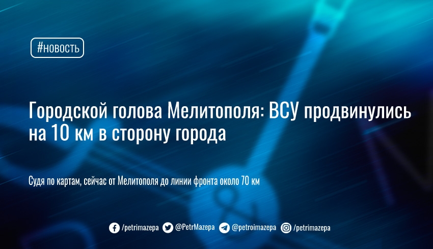 Городской голова Мелитополя: ВСУ продвинулись на 10 км в сторону города