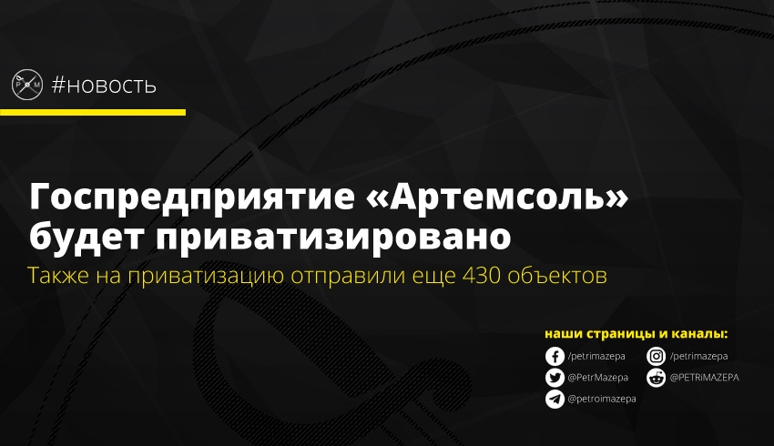 Сегодня правительство приняло решение о передаче еще 431 объекта на приватизацию в Фонд государственного имущества. В перчне объектов, которые готовят к приватизации значится предприятие «Артемсоль».