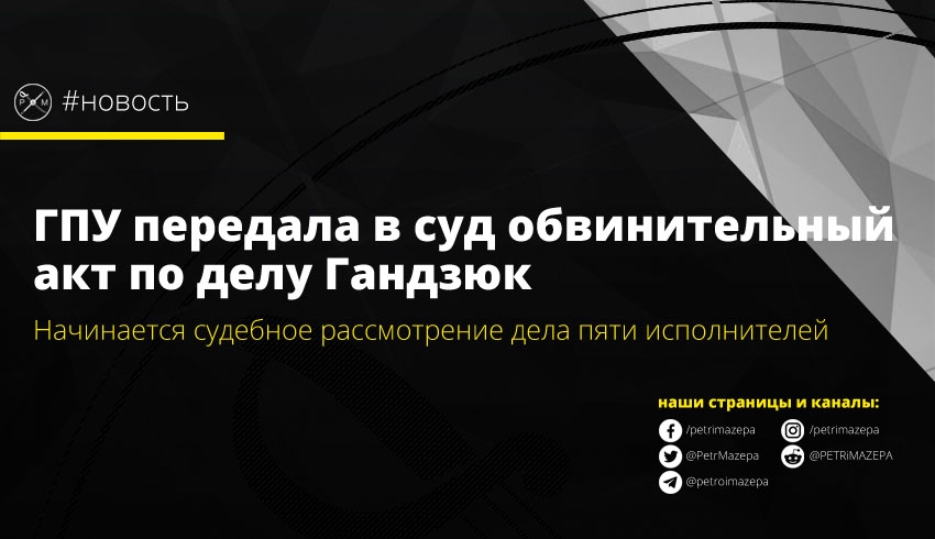 ГПУ утвердила и передала в суд обвинительный акт по делу Гандзюк. Теперь может начаться судебное рассмотрение дела касательно пяти исполнителей, которым вменяется нанесение тяжких телесных повреждений, причинивших смерть потерпевшей.