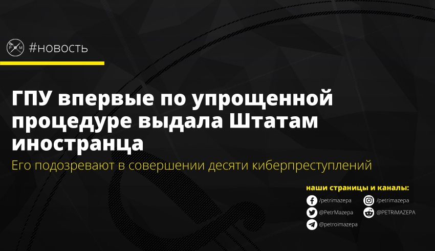 32-летнего мужчину задержали в октябре этого года на территории Украины. И сейчас ГПУ приняла решение экстрадировать его в США в упрощенном порядке. «Сегодня он фактически передан компетентным органам этой страны», - значится в сообщении.