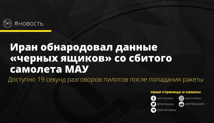 Организация гражданской авиации Ирана обнародовала данные из «черных ящиков» со сбитого в январе над Тегераном самолета МАУ. Доступно 19 секунд разговоров пилотов после попадания первой ракеты.