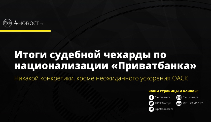 - На брифинге около ОАСК сообщили, что по мнению судейской коллегии (в которой все три судьи, по данным «Чесно», являются недобросовестными) ответчики не предоставили суду достаточных доказательств того, что национализация была необходима. А значит – были нарушены права экс-владельца банка Игоря Коломойского.