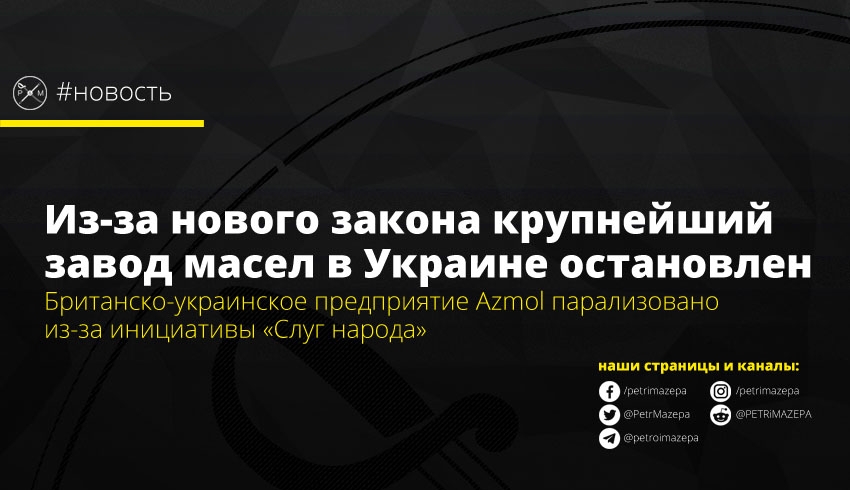 Из-за нового закона крупнейший завод масел в Украине остановлен