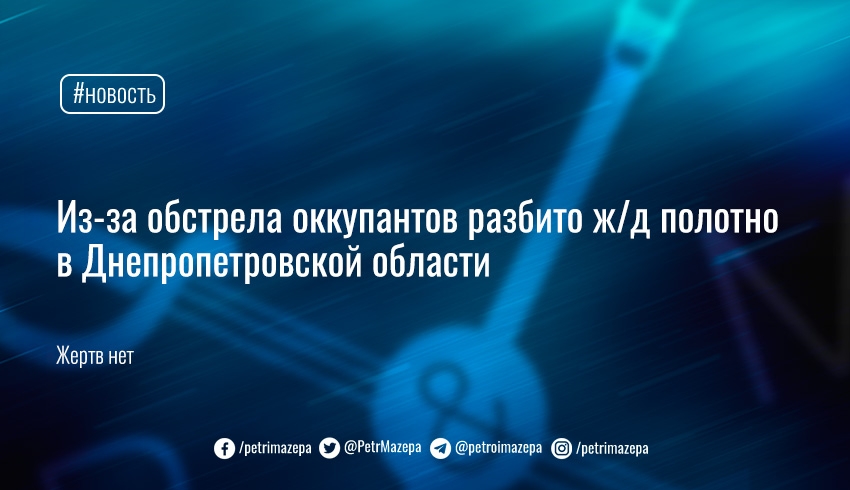 Оккупанты обстреляли Новомосковский район Днепропетровской области. Разбито железнодорожное полотно.