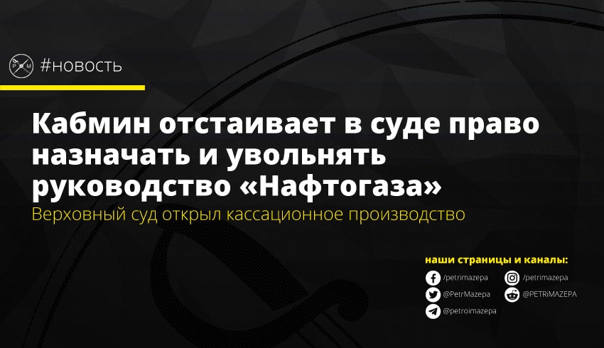 Верховный суд Украины принял к рассмотрению кассацию Кабмина на решение судов предыдущих инстанций, которыми в качестве меры обеспечения иска правительству было запрещено назначать и увольнять руководство НАК «Нафтогаз». Подан иск и в Шестой апелляционный административный суд – там Кабмин оспаривает признание своего постановления о назначении руководства без представления Набсовета противоправным и недействительным.