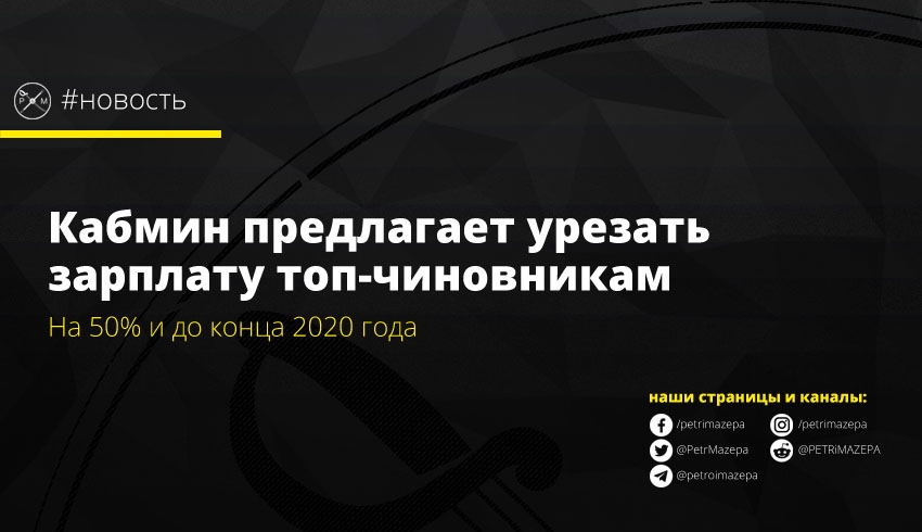 Кабинет министров Украины предлагает, чтобы до конца 2020 года чиновники, получающие более 10 минимальных заработных плат, получали только половину, а размер оплаты труда и вознаграждений главам членам набсоветов госпредприятий и госкомпаний был снижен на 30%.