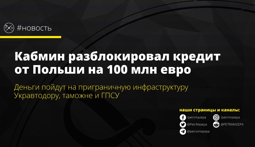 Назначение кредита на 100 млн евро - развитие пограничной дорожной инфраструктуры и обустройство пунктов пропуска на украинской-польской границе, сообщает Минфин. Кредитный договор между правительствами Украины и Польши вступил в силу еще в апреле 2016 года. Но сложности с выполнением польскими предприятиями контрактов, заказчиками по которым являются Укравтодор, Службы автомобильных дорог во Львовской и Волынской областях, ГФС (правопреемник - Государственная таможенная служба), в частности, с ввозом и закупкой на территории Украины необходимых товаров, привели к тому, что за 4 года было использовано чуть только 5,8 млн евро.