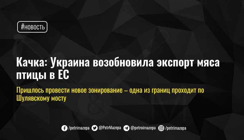 Украине удалось добиться возобновления экспорта мяса птицы в Европейский Союз. Несколько недель назад он был приостановлен из-за вспышек птичьего гриппа. Чтобы возобновить экспорт, пришлось перекраивать районы зонирования.
