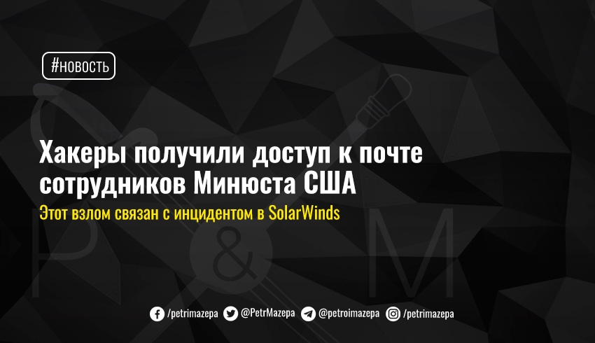 Минюст, в свою очередь, получил уведомление о вредоносной деятельности, связанной с инцидентом в компании SolarWinds, о котором стало известно в декабре прошлого года. Операции хакеров затронули ряд федеральных ведомств и технических подрядчиков, поскольку SolarWinds - это ИТ-компания, которая обслуживает американские министерства и спецслужбы.