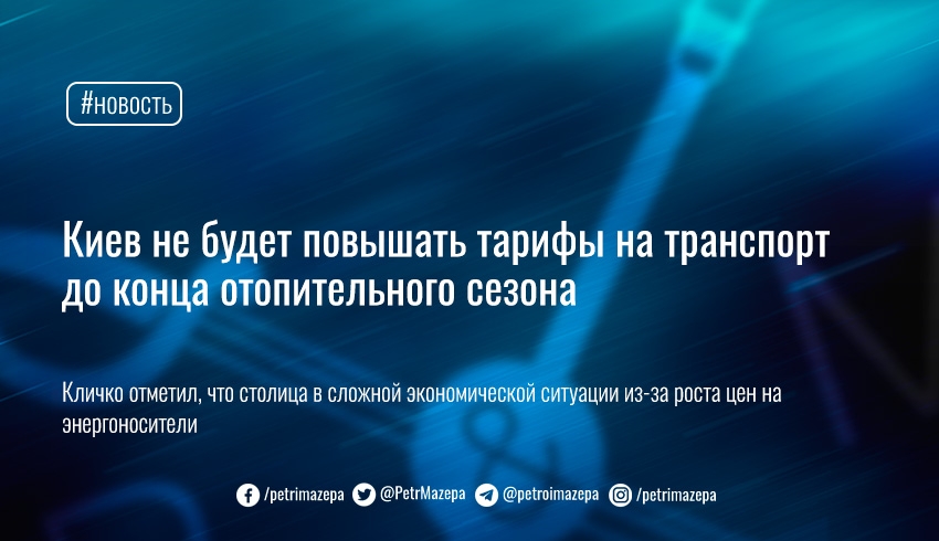 «Как у мэра Киева, у меня позиция следующая и четкая: вопрос пересмотра тарифов на проезд в коммунальном транспорте до конца отопительного сезона рассматриваться не будет», - подчеркнул городской голова Виталий Кличко в Facebook.