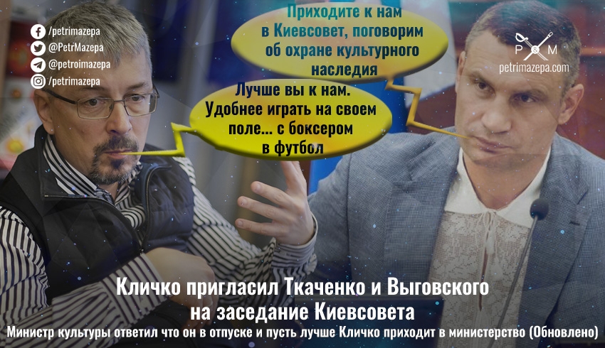 На этом Ткаченко не остановился и пригласил Кличко к себе в министерство на 2 сентября - рассказать «в присутствии представителей правоохранительных органов», почему «режимы исторических ареалов в Киеве одни из худших в стране».