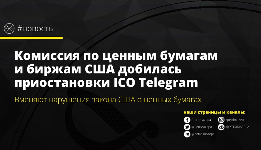 Комиссия по ценным бумагам и биржам США (SEC) в суде Манхеттена добилась приостановки незарегистрированного первичного размещения токенов (ICO) мессенджера Telegram Павла Дурова. Комиссия настаивает на том, чтобы все ICO приравнивались к публичному размещению и были подкреплены необходимыми документами. Иначе, действия компаний могут нанести вред американским инвесторам, которые уже профинансировали такие проекты.