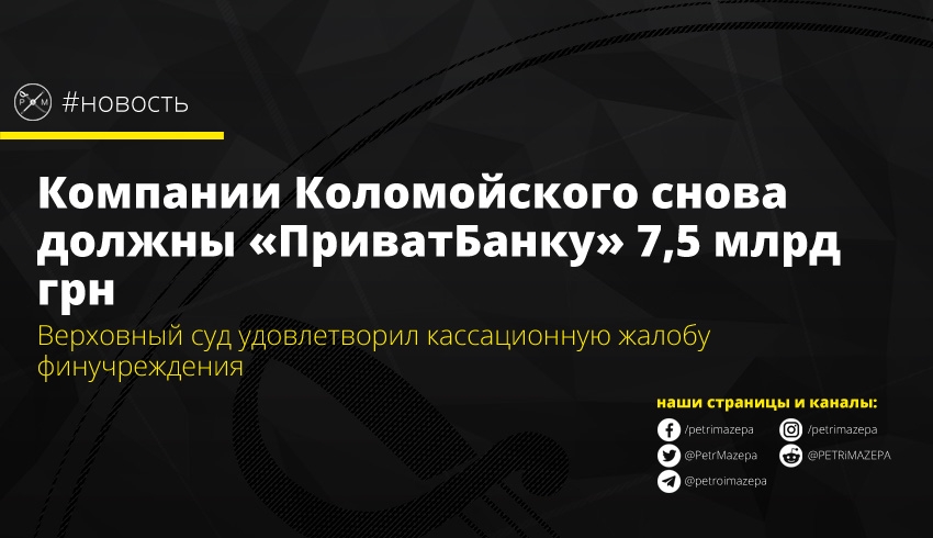 Компании Коломойского снова должны «ПриватБанку» 7,5 млрд грн