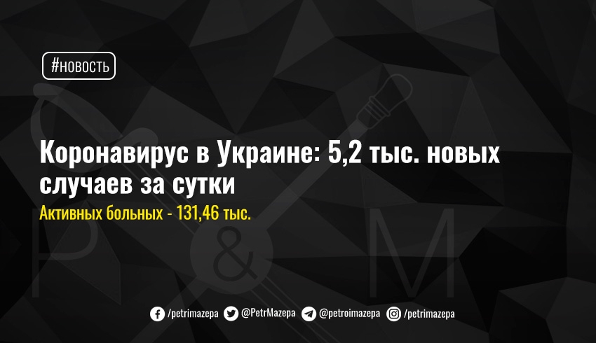 Коронавирус в Украине: 5,2 тыс. новых случаев за сутки